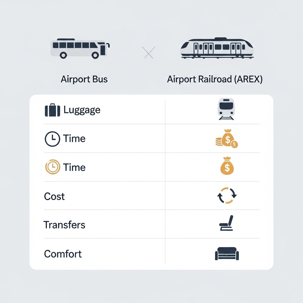 공항버스와 공항철도를 요금·시간·짐·상황별로 비교합니다.
